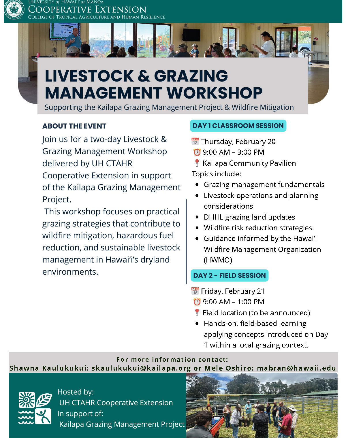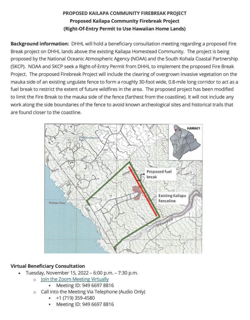 Since April 23, 2004, the Kailapa Community Association (KCA) has served the Kailapa Hawaiian Homestead community and one other neighboring Hawaiian Homestead community at Puakaʻilima in Kohala. We appreciate your interest in our community, if you’d like to be added to our email list, please send your contact information to office@kailapa.org.